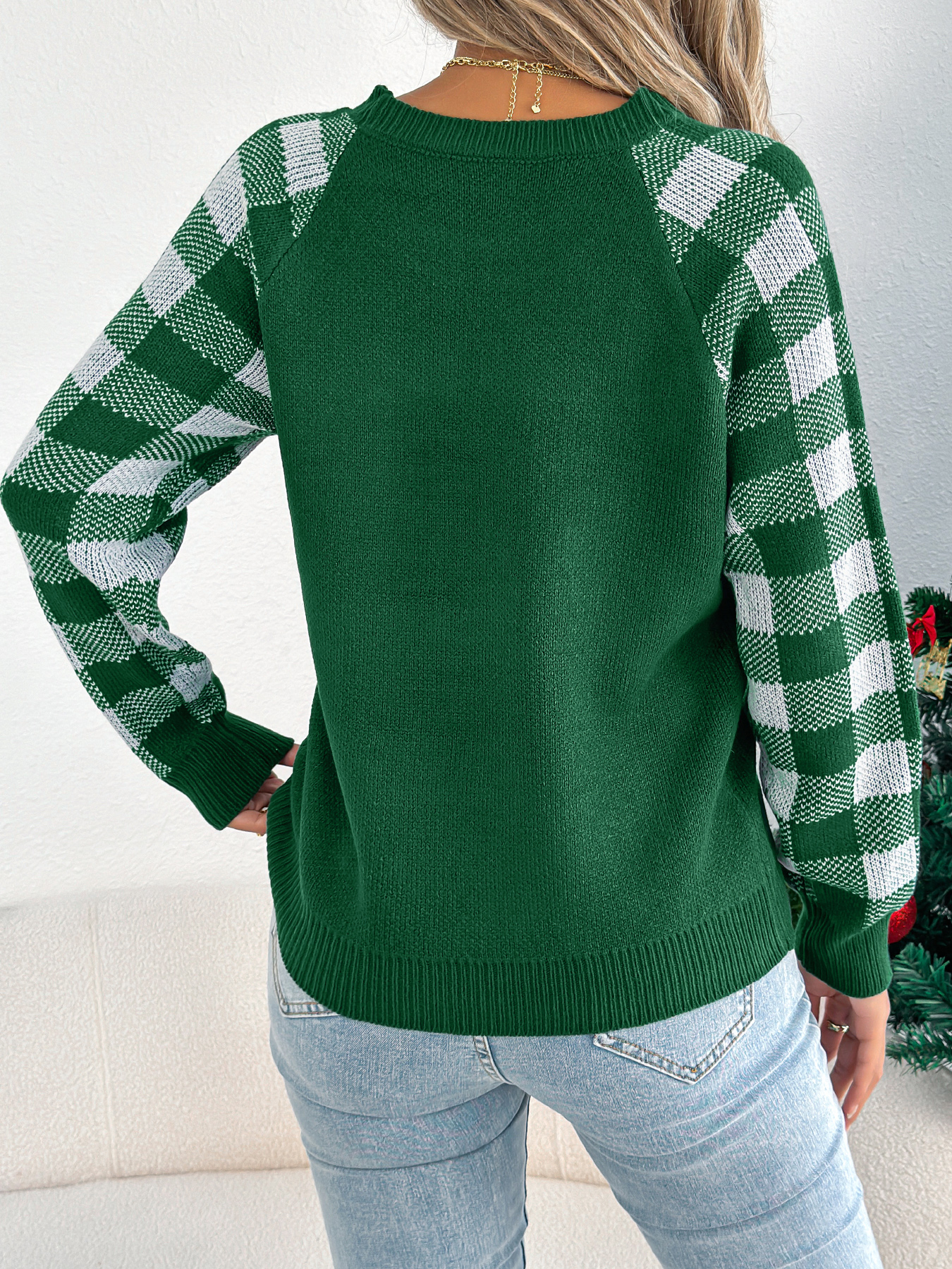 Women Casual Plaid Deer Long Sleeve Pullover Sweater Christmas Edition