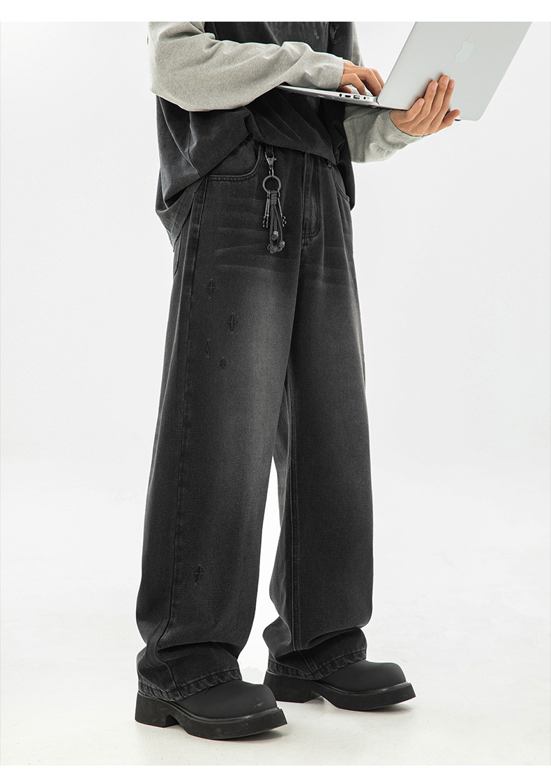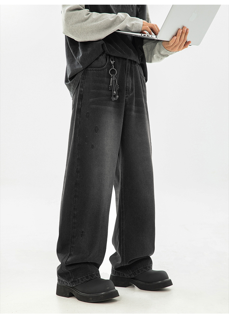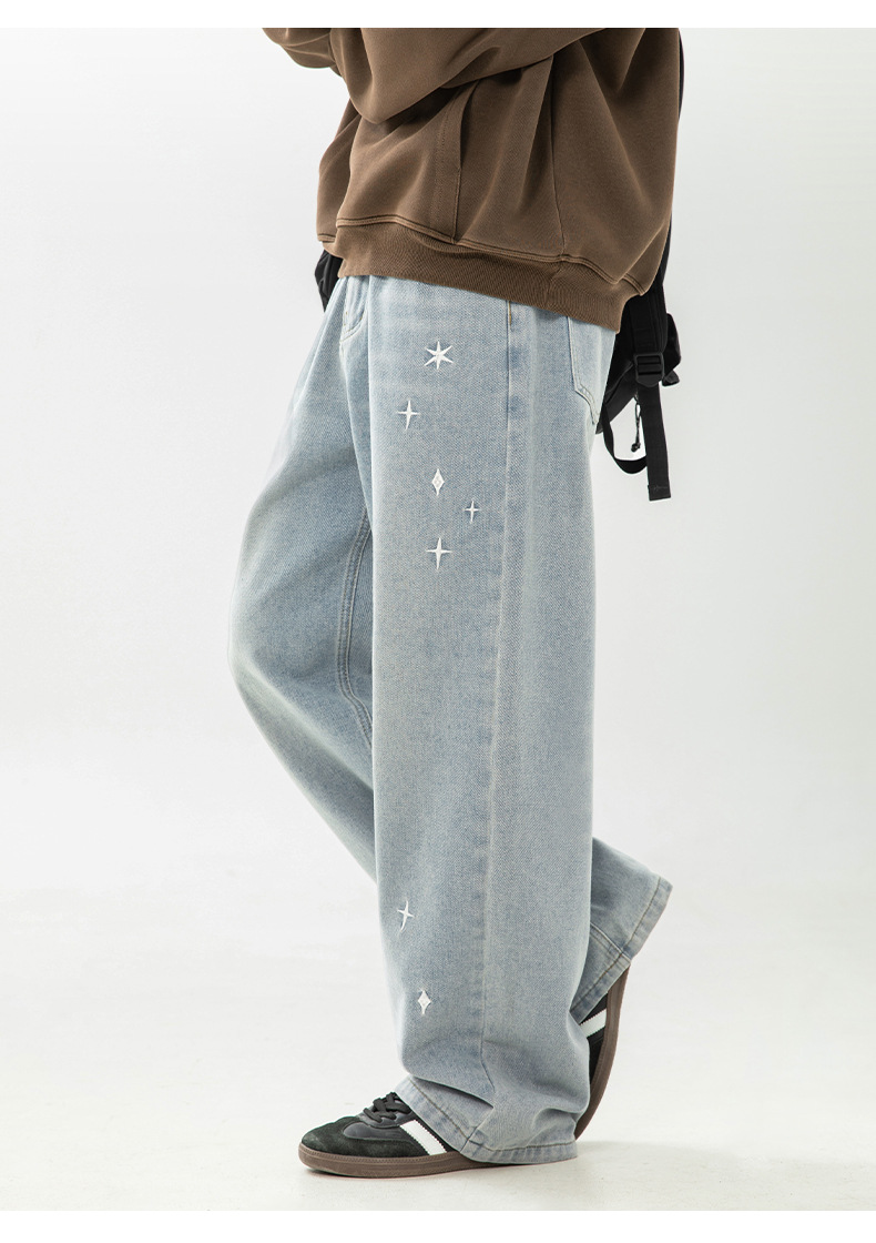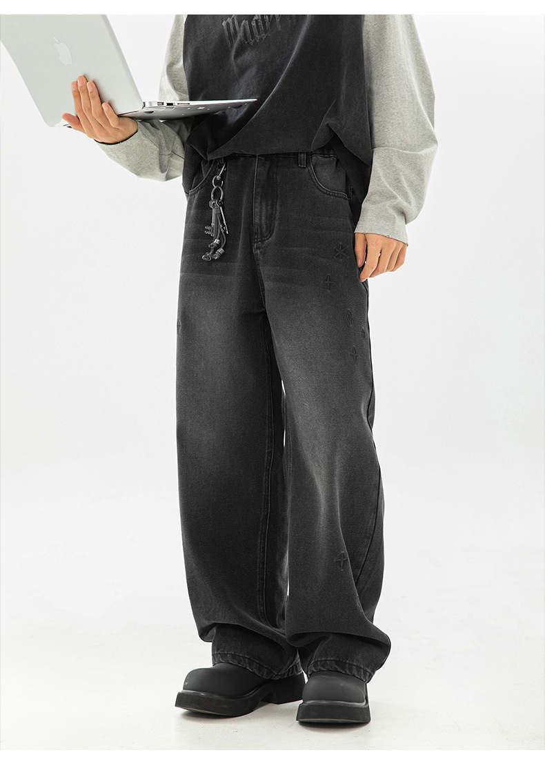 Retro Worn Looking Washed-out Embroidered Jeans Men's Spring New