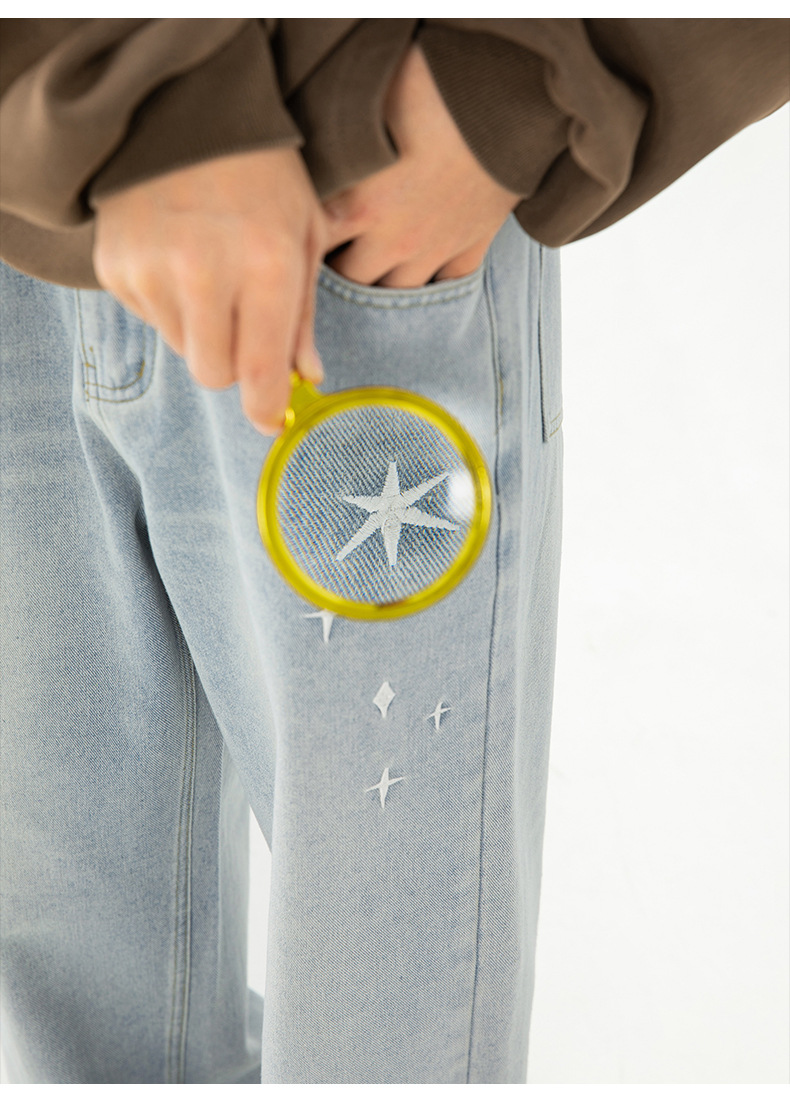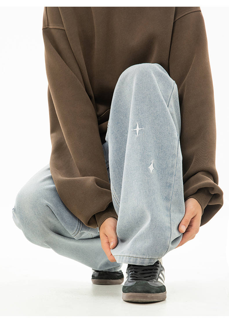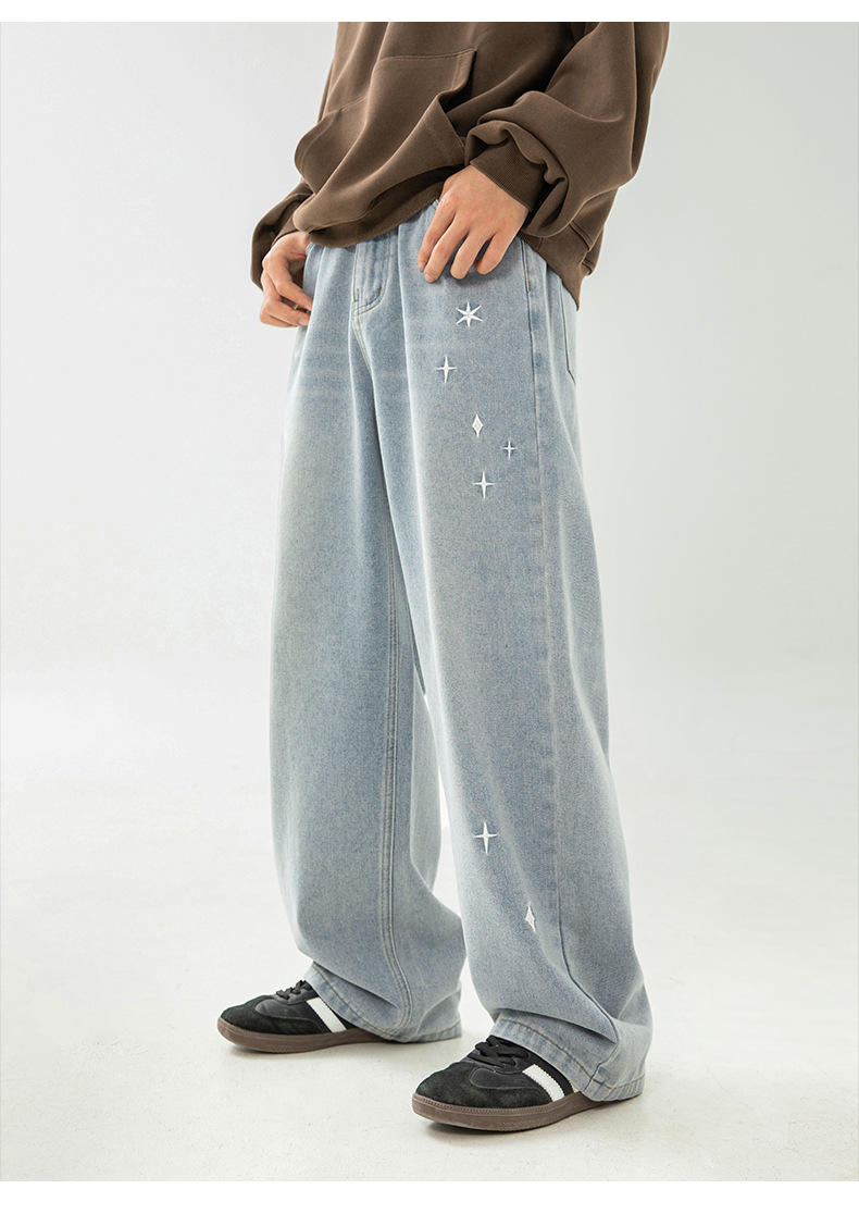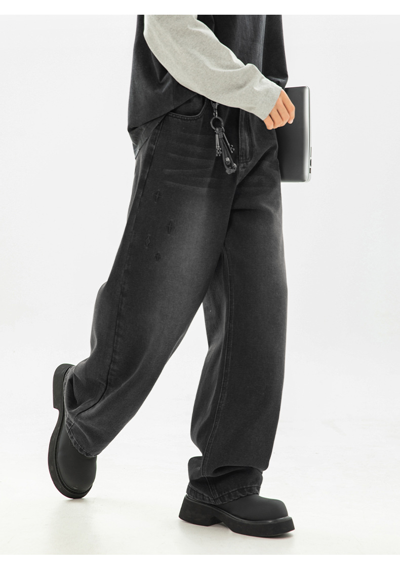 Retro Worn Looking Washed-out Embroidered Jeans Men's Spring New