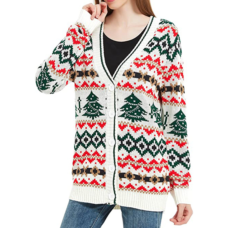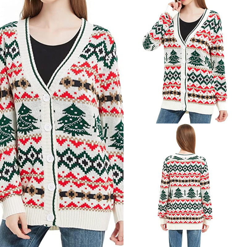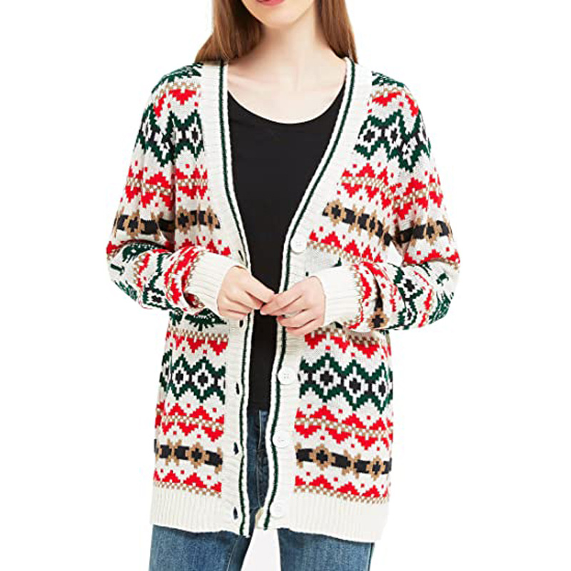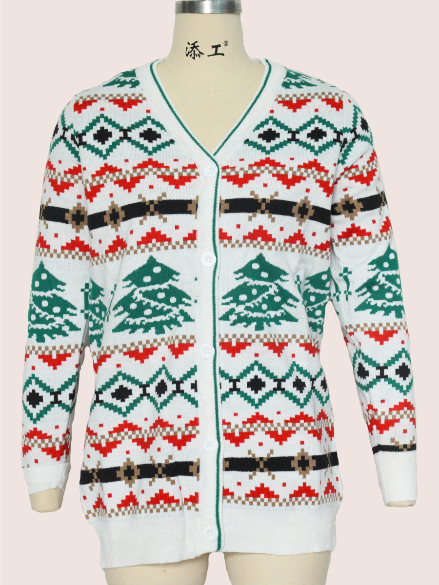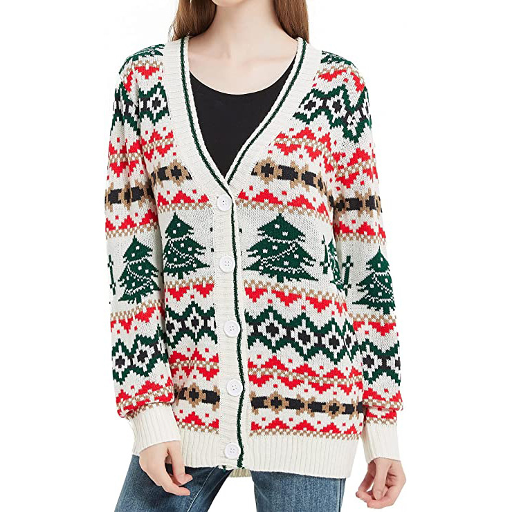 Single-breasted Knitted Cardigan Jacquard Christmas Sweater