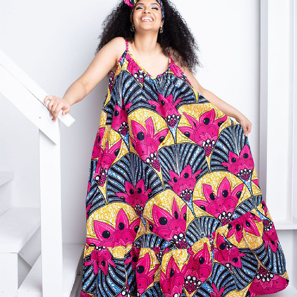 African's Strap Printed Holiday Big Hem Oversize Dress